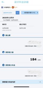 昨年12月の売電量は184kwh。